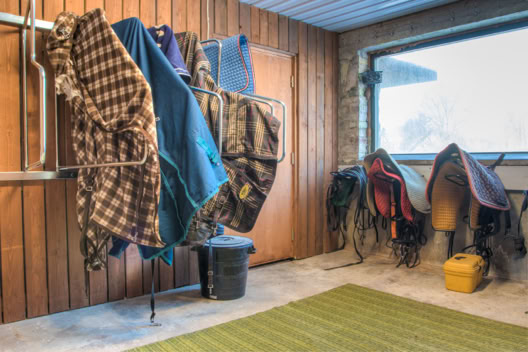 Tilan EU-mitat täyttävässä hevostallissa on kaksitoista tallipaikkaa, joissa asuu tilan hevosten lisäksi täyshoitohevosia. Vanhaan kivinavettaan remontoidussa tallissa on tilavat käytävät, kaksi satulahuonetta loimenkuivatuspaikkoineen ja hyvin säilytystilaa.Ilmanvaihto toimii ja karsinoiden hamppukuivikepatja ei turhia pölise. Lämpöpuhaltimet pitävät lämpötilan plussan puolella kovemmallakin pakkasella.