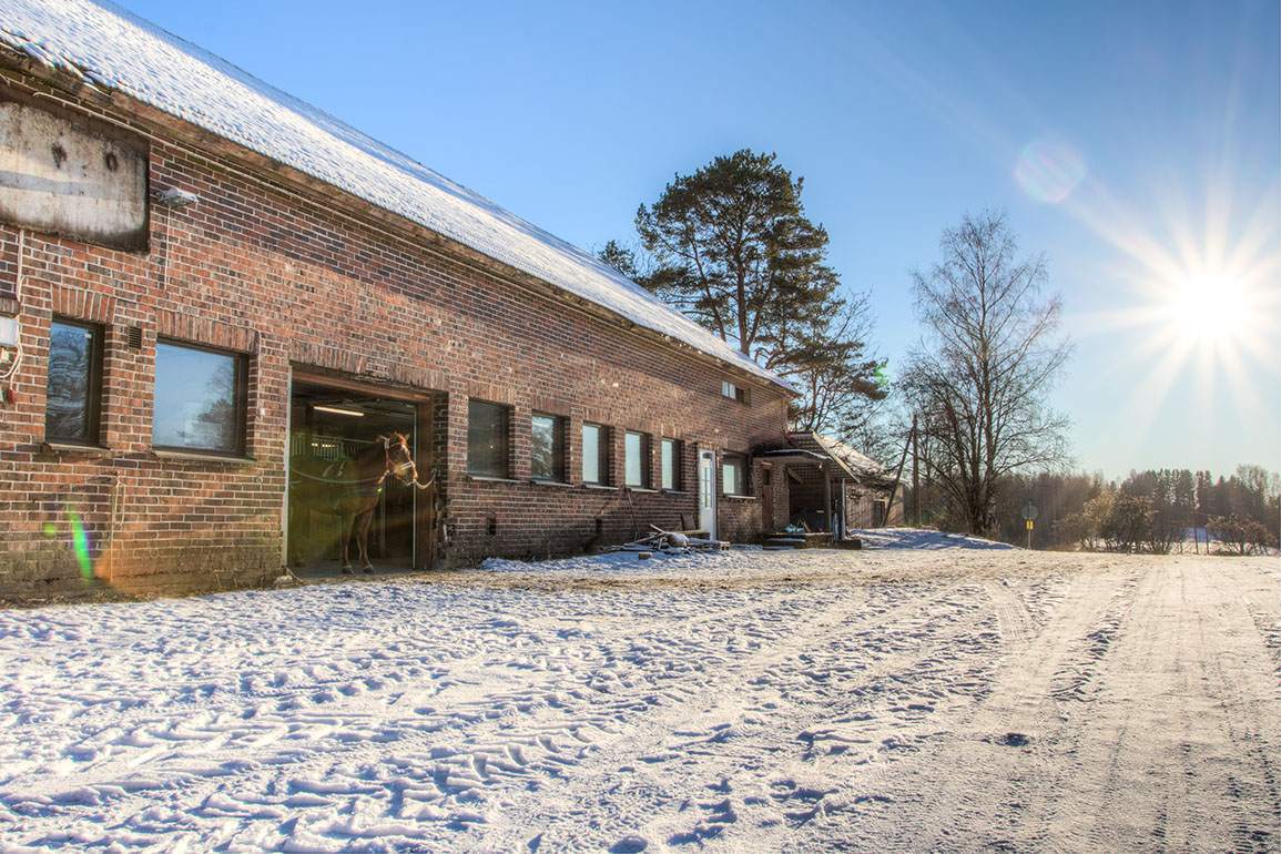 Tilan EU-mitat täyttävässä hevostallissa on kaksitoista tallipaikkaa, joissa asuu tilan hevosten lisäksi täyshoitohevosia. Vanhaan kivinavettaan remontoidussa tallissa on tilavat käytävät, kaksi satulahuonetta loimenkuivauspaikkoineen ja hyvin säilytystilaa. Ilmanvaihto toimii ja karsinoiden hamppukuivikepatja ei turhia pölise. Lämpöpuhaltimet pitävät lämpötilan plussan puolella kovemmallakin pakkasella. Loimipesukone, WC ja jääkaappi ovat asiakkaiden käytössä.